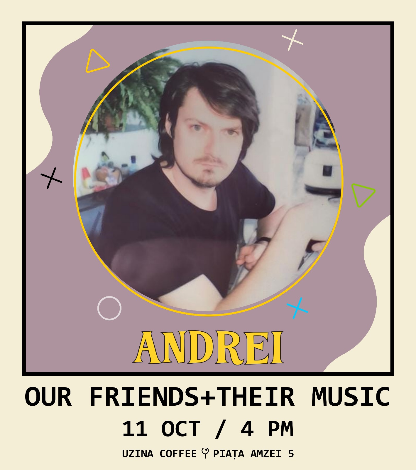 Salutare! Mâine, de la 4 PM, vă invităm la o nouă sesiune ⚡Our Friends+Their Music⚡, în care prietenii @uzina_coffee urcă la pupitrul de DJ și pun muzică. De data aceasta, este rândul prietenului nostru, Andrei (@andrei.l.georgescu ), de profesie psiholog